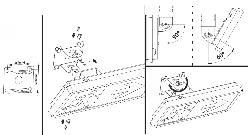 • enables the installation of the emergency luminaire in various planes