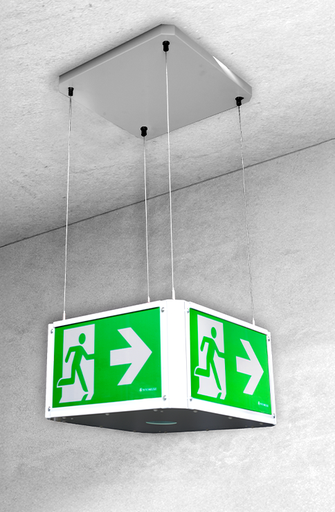 PRIMO Q è un moderno apparecchio per l’illuminazione delle vie di fuga, a bandiera, progettato per soddisfare i requisiti dei progetti internazionali. L’illuminazione interna del pittogramma garantisce un’eccellente leggibilità della segnaletica alle intersezioni delle vie di fuga, garantendo la visibilità da una distanza di 30 o 40 metri, a seconda del modello. La sua robusta struttura in metallo combina la durabilità con una finitura elegante. L’apparecchio di illuminazione viene fornito senza pittogrammi, che possono essere scelti in base alle esigenze di un progetto specifico.